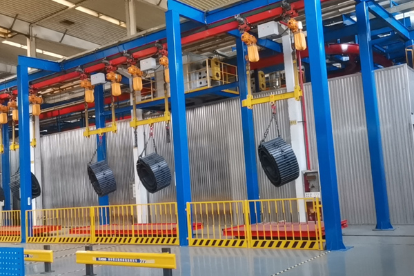 懸掛輸送線可在空間上下坡和轉(zhuǎn)彎,布局方式自用靈活,既充份利用空間,又可以與地面的作業(yè)配合進(jìn)行,因此,廣泛應(yīng)用于機(jī)械、汽車、電子、家用電器、輕工、食品、化工等行業(yè)大批量流水生產(chǎn)作業(yè)中。